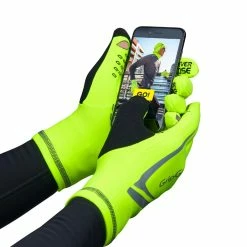 GripGrab Running Expert Hi-Vis er avancerede handsker til vinterløb. De leverer fremragende isolering og ekstraordinær åndbarhed. EasyTouch touchscreen-kompatible fingerspidser gør det muligt at bruge telefonen uden at skulle tage handskerne af. De klare gule, lyserøde eller orange fluorescerende farver hjælper med at gøre dig mere synlig for andre trafikanter. Der er også en praktisk sweat wiper på tommelfingeren og reflekterende detaljer, til når du løber i mørket.
