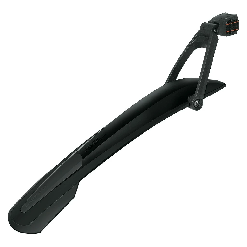 Praktisk aftagelig bagskærm fra SKS til mountainbikes med 26″ eller 27,5″ hjul. SKS X-Blade monteres let på sadelpindel via et spænde med silikone-greb. Derved sidder skærmen godt fast, men kan ligeledes let afmonteres. Skærmen er ekstra bred på det bagerste punkt, hvilket gør skærmen utroligt godt dækkende i vådt føre. Skærmen anbefales til pendleren eller mountainbikeren, der ønsker at blive bedst muligt dækket på cykelture i vådt føre, men som alligevel foretrækker at kunne afmontere skærmen hurtigt, ved kørsel i tørt føre. Skærmen kan af-/påmonteres på under fem sekunder!