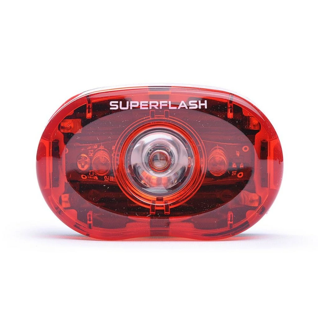 Smart Superflash baglygte. Baglygten bruger 2 X AAA batterier, som medfølger.